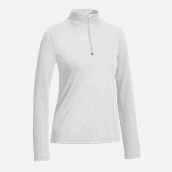 Expert Women's White Quarter Zip Training is a full-sleeve versatile top which can be either be worn as a base-layer or as an outer layer. Crafted from 100% microfiber polyester pk maX. The performance-driven fabric wicks moisture away from the skin. Half zipper flap allows a customizable ventilation and fit. Personalize workout routine with this customizable winter top for women. Create a head-turning activewear shirt sporting your company's logo to give long-term exposure to your brand's identity.The minimum order for this product is 12 pieces.