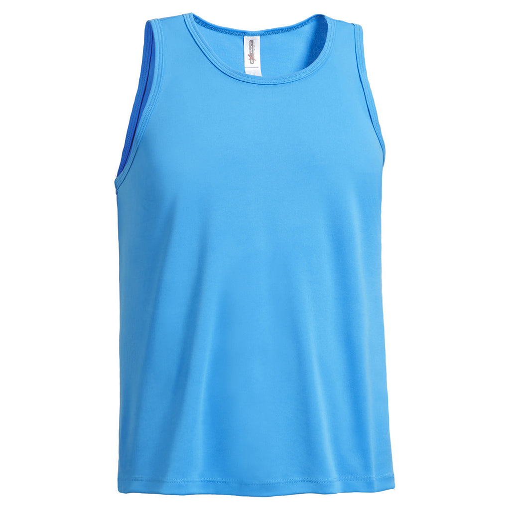 Move freely and comfortably in any workout program with Expert Men's Safety Blue Workout Tech tank top featuring breathable mesh for letting out excess heat for cool comfort while working out. Offset side seams minimize the chances of chafing and irritation while athletic fit ensures freedom of movement during workout regimen. Crafted from 100% microfiber polyester px maX. The fabric is BodyFreshe anti-bacterial technology and wicks sweat quickly. Flaunt your brand pride with this men's performance tank top! Our advanced customization service lets you customize this top with ultra-fine quality logo imprint of your company.The minimum order for this product is 12 pieces.