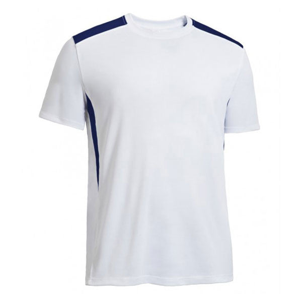Expert Men's White/Navy Metro Tee offers an easy way to show you worked blood sweat and tears, finally making it perfect piece for the summer workout regimen. Contrast shoulder and side/front panels add to the aesthetic profile of this tee. Topstitching promotes freedom of movement and ensures irritation-free experience. Crafted from 100% microfiber polyester px maX and equipped with BodyFreshe technology to fight off bacteria. Promote active lifestyle with men's Metro T-shirt by customizing it with a logo of your company.The minimum order for this product is 12 pieces.