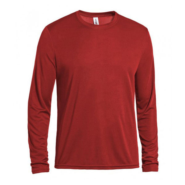 This Expert Men's Red Long Sleeve Tee is made from 100% microfiber polyester pk maX with a wicking finish that swipes sweat from your skin and treated with anti-allergic BodyFreshe technology. The shirt has a relaxed fit and conforms to every movement of your body. This simple long-sleeve crew neck is great not just for an active lifestyle but it also works for all summertime activities. If you're after an ergonomic version of everyday basic T, you'll love this Expert's Long Sleeve Tee. It is customizable with a logo or message for uses such as branded merchandise, corporate giveaway or for event marketing/promotion.The minimum order for this product is 12 pieces.