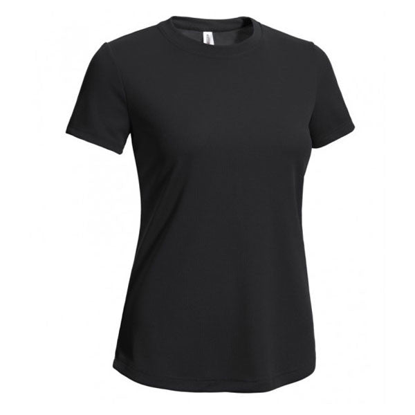 Go the extra mile this summer with Expert's Expert Women's Black Tec Tee featuring short sleeve crew neck with curved hem. Made from sweat-wicking and 100% microfiber oXymesh fabric, this one will keep you dry throughout workout session. Treated with BodyFreshe tech to minimize bad odors. Curve-complimenting fit promise lasting comfort in this breathable tee. This customizable women's active lifestyle t-shirt offers a highly practical way to show company loyalty and promotes a healthy lifestyle among recipients. Our quick and efficient service will customize this T-shirt with the logo or message of your business.The minimum order for this product is 12 pieces.