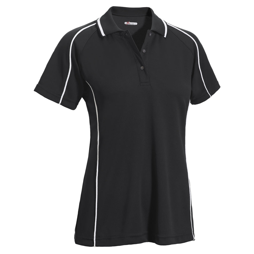 Expert Women's Black/White Malibu Polo is crafted from moisture-wicking, 100% microfiber polyester fabric that keeps you dry during a training session. It's armed with BodyFreshe anti-bacterial tech to keep garment fresher for longer. Relaxed fit provides maximum comfort and optimal mobility to resonate with your active lifestyle. Tuck it into a skirt or a pair of shorts for a chic, performance-ready silhouette. Customize this women's polo with a logo for your company's female associates, employees or clients or give it away on your next corporate branding campaign to promote a healthy and active lifestyle.The minimum order for this product is 12 pieces.