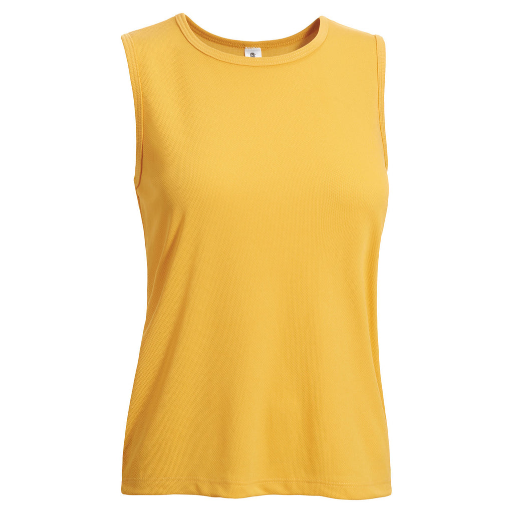 If your dedication to fitness has amped up your confidence to an all-time high or even if you're midway through dedication, you need Expert Women's Gold Singlet to show off your hard-earned guns. Crafted from 100% microfiber oXymesh, this singlet wicks away sweat, cooling you down during a workout session while its BodyFreshe property fights off bacteria and keeps odors at bay. Self-fabric binding prevents chafing. Customize it with a logo artwork of your choice to bring your brand or company to the public eye. Perfect for dance studios, gyms and other businesses related to active lifestyle.The minimum order for this product is 12 pieces.
