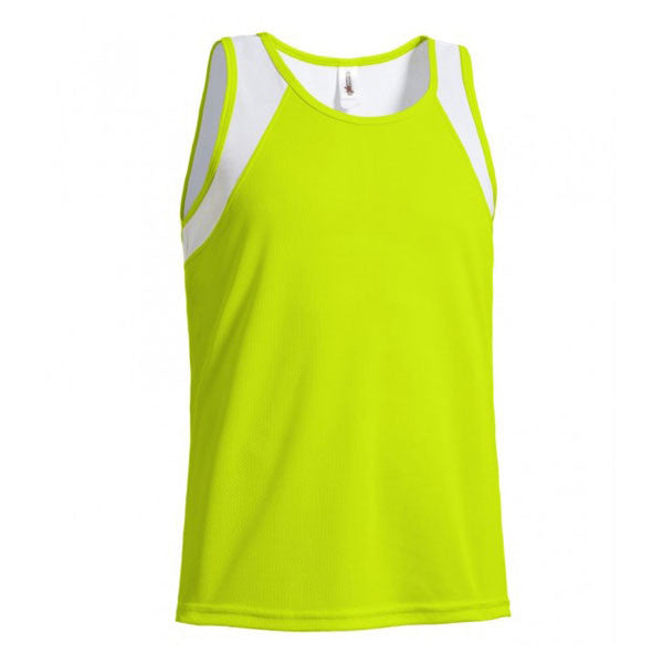 Expert's Expert Men's Lime/White Distance Singlet is enlivened by an up-to-date style that is fresh, effortless, and built to turn heads without you even making a move. Self-fabric binding prevents chafing while contrast panels add to sporty aesthetic of this tank. Runner's fit enables absolute mobility during workout regimen. Moisture-wicking properties will repel sweat while BodyFreshe antibacterial treatment prevents bacterial growth to keep you fresh and dry all way through. Order custom singlets for your next event and help your clients stay active with this men's tank featuring your logo and let the world know your company is for a healthy world!The minimum order for this product is 12 pieces.