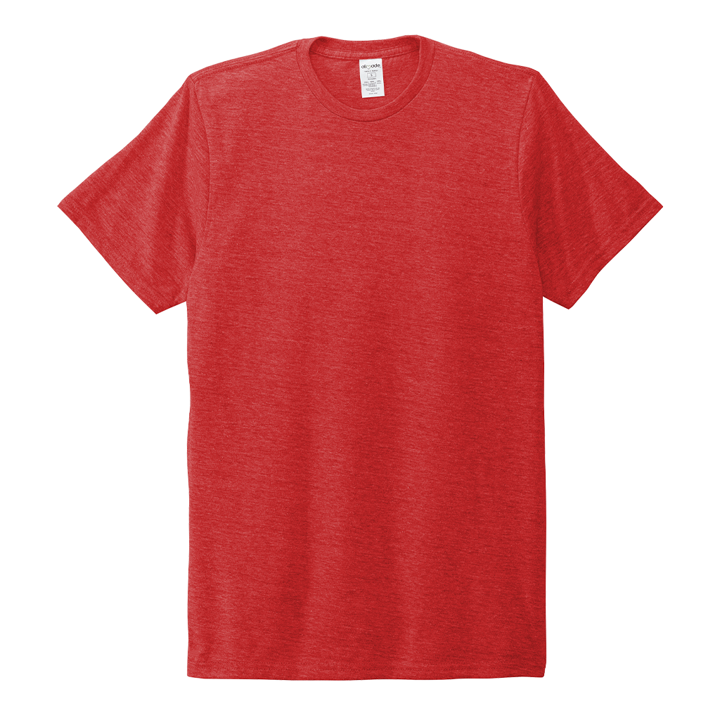 Screen print will pop on the Allmade Unisex Rise Up Red Tri-Blend Tee with your choice of design and location. This sustainable clothing is a must have for most wardrobes because it is both eco-friendly and comfortable. Easy to wear alone or layer as needed, this recycled apparel is made from sustainable materials that are the equivalent of up to six recycled plastic water bottles. With a rib knit collar, side seams, and tear away label, this tee can go from a morning run to a day spent with families and home again with ease. Made for durability, this tee will make your custom logo stand out whether used as a custom gift or employee apparel.