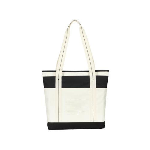 Get carried away when you add your logo to this customizable Atchison Black Hamptons Getaway Tote! A great eco-friendly alternative to plastic bags, this tote boasts a large interior for carrying all the day's essentials. Highlights include a zippered main compartment, front slip pocket and shoulder-length handles.