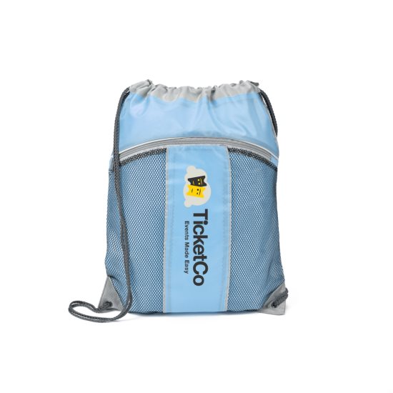 - 210D polyester, two tone mesh and nylon drawstring bag with front zippered pocket
