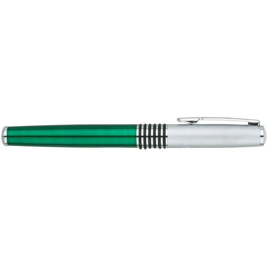 A classic everyday essential, this Bande Logomark Green Rollerball Pen is for anyone with a penchant for aesthetic writing instruments. It has pull-cap design and features a brass barrel and rubber accents. This pen can be engraved with your company logo for a corporate giveaway touch.