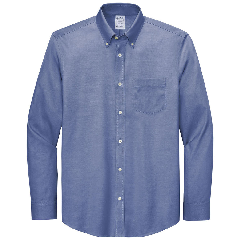 Brooks Brothers Men's Cobalt Blue Wrinkle-Free Stretch Pinpoint Shirt with a custom logo will turn heads with the large checkered pattern that is sleek and stylish. The lightweight button-down is ideal for the always stylish button-down. Obtain the classic and always reliable corporate shirt. Place an order for the entire team to elevate any office