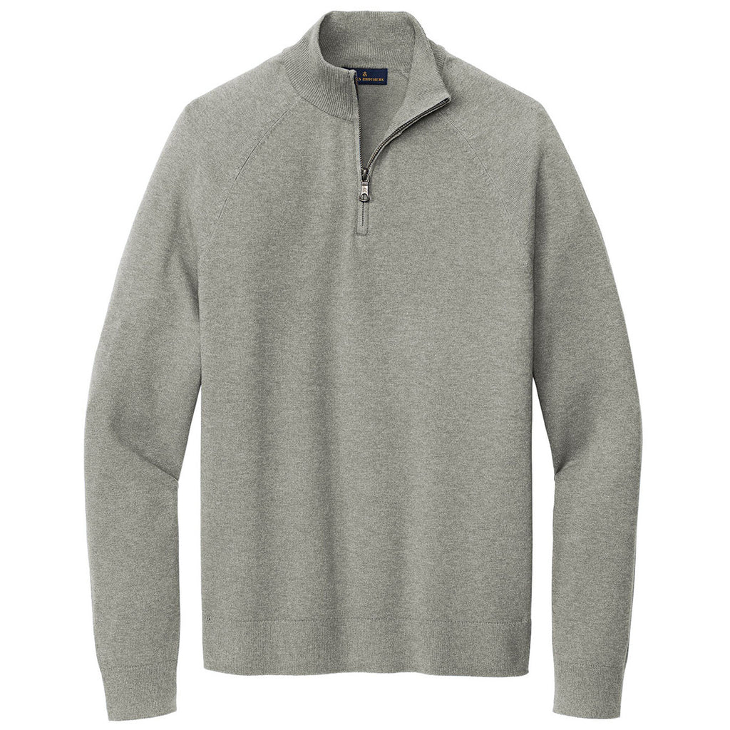 Brooks Brothers Men's Light Shadow Grey Heather Cotton Stretch Quarter Zip Sweater