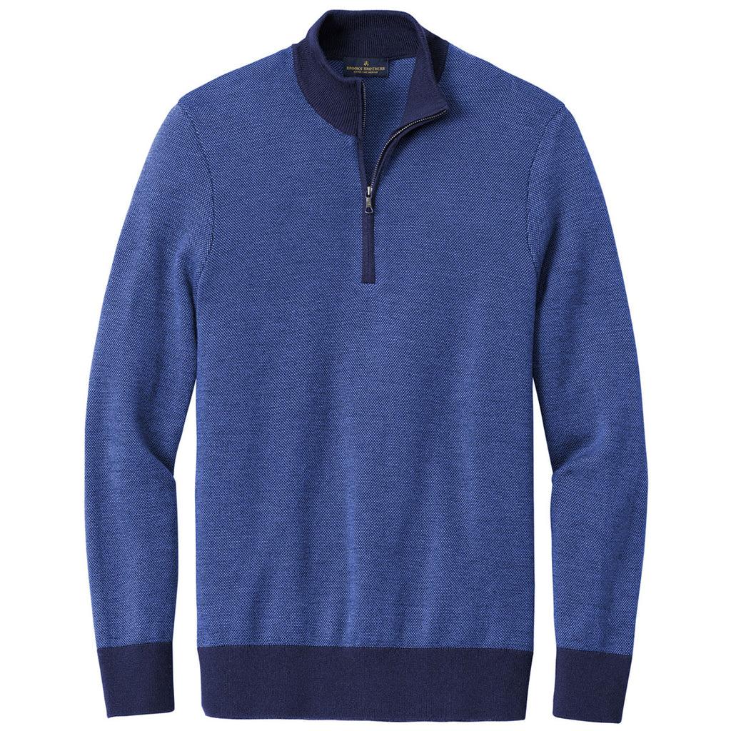 Brooks Brothers Men's Navy/Compass Blue Washable Merino Birdseye 1/4 Zip Sweater