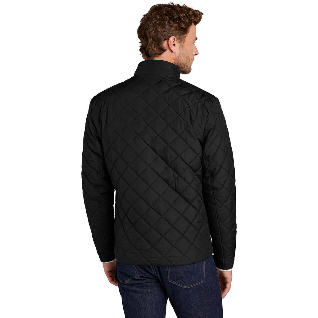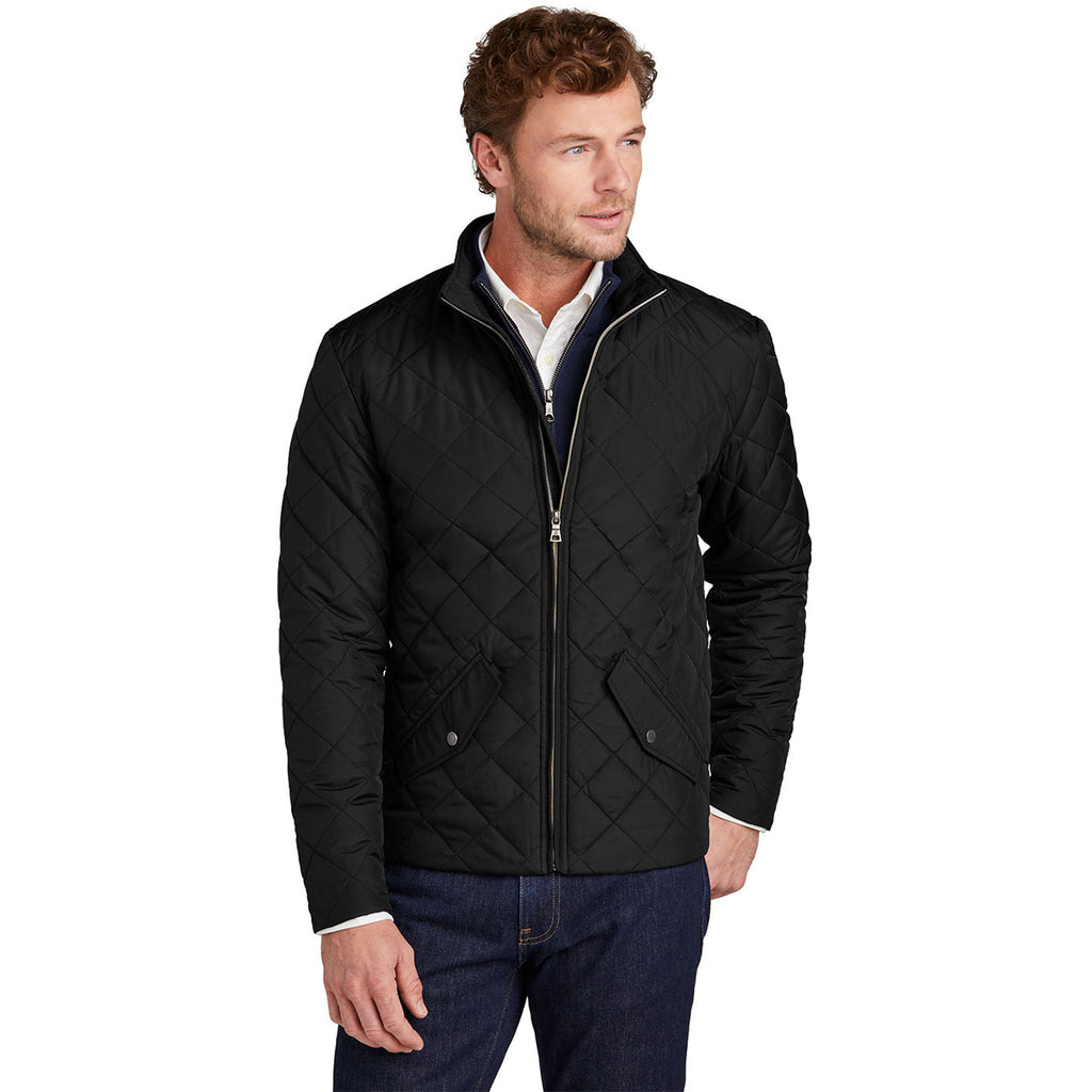 Brooks Brothers Men's Deep Black Quilted Jacket with custom embroidery is a high-end look for an affordable price. The gorgeous jacket is great for chilly autumn weather with a polyester shell and lining with a rib knit collar and faux leather label patch. Add a company logo to the design to use as outerwear for employees or to give as gifts for a special occasion. Place an order today.