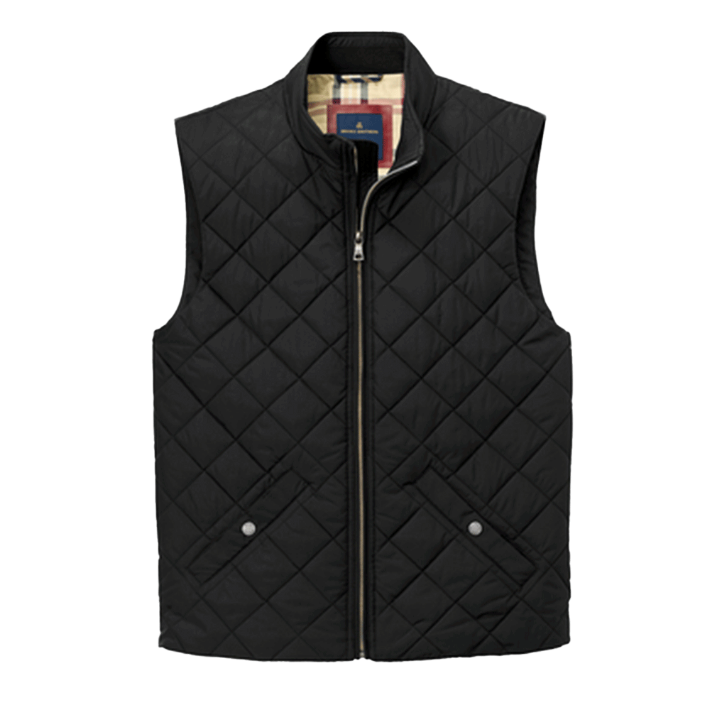 Stand out with a custom embroidered Brooks Brothers Men's Deep Black Quilted Vest. Metal front zipper and details make for the trademark suaveness and sophistication made for any boardroom or tradeshow. Have your entire team stand out with this high-quality, professional vest.