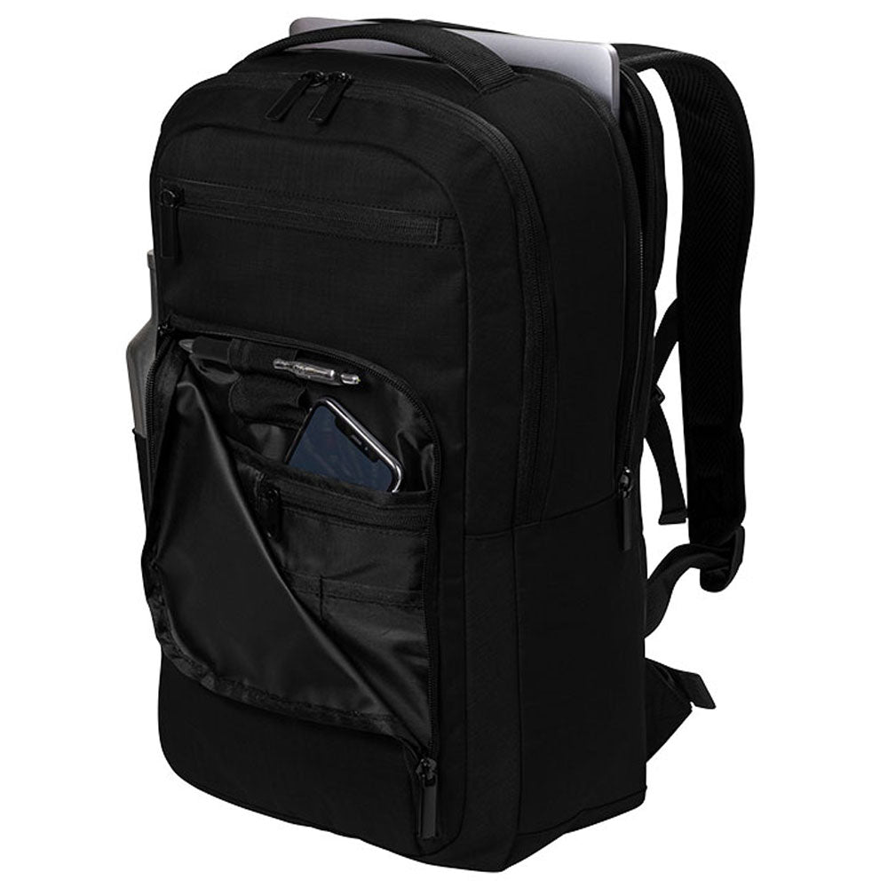 Sleek and sophisticated in design, the Port Authority Deep Black Impact Tech Backpack will ensure your company's custom logo gets noticed around campus or around the city. Contemporary twill polyester gives it a modern edge that young students and professionals will appreciate. It also comes complete with multiple interior pockets so staying organized is easy.
