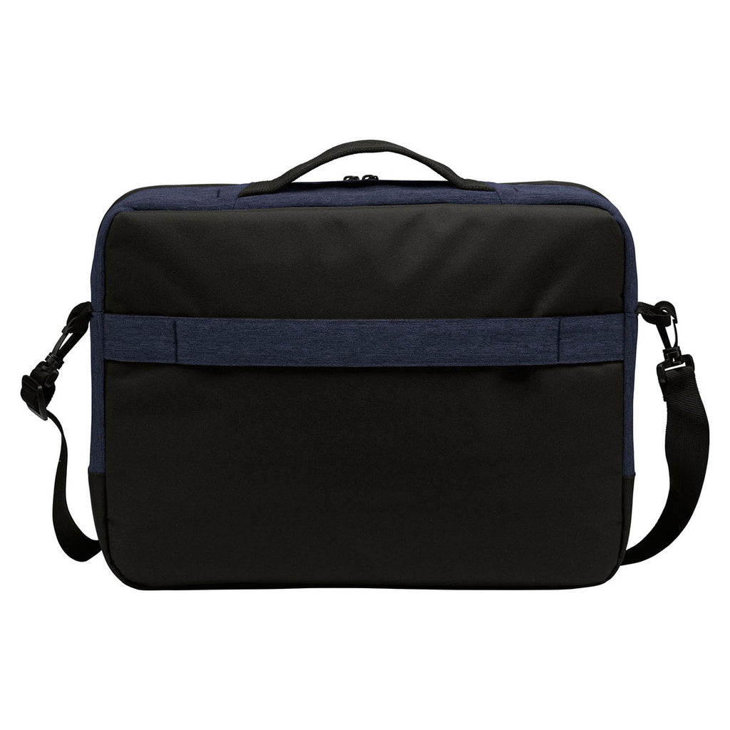 With a heathered design, the printed Port Authority Navy Heather Vector Briefcase will turn heads at airports on the way to the next industry trade show. Grab the top carrying handle to move through terminals and concourses with ease. Store important business documents within the sleeve and have instant access to electronic devices by placing the compact briefcase in a luggage compartment. Rugged polyester absorbs the punishment delivered by bumpy long distance flights. The padded adjustable shoulder strap allows you to easily carry the bag to and from the office.Highlights