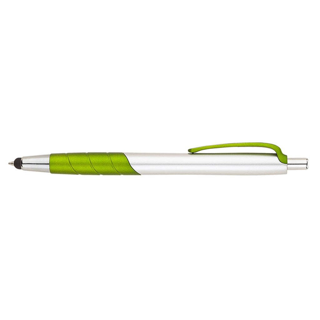 Distinguished by a colored grip and chrome barrel, Pinnacle Valumark Green Pen + Stylus is sure to endure the rigors of everyday use. It also has a conductive stylus you can use on touch-screen devices. Promote writing habits and doodle art with a customized logo pen for giveaways and promotional swag.