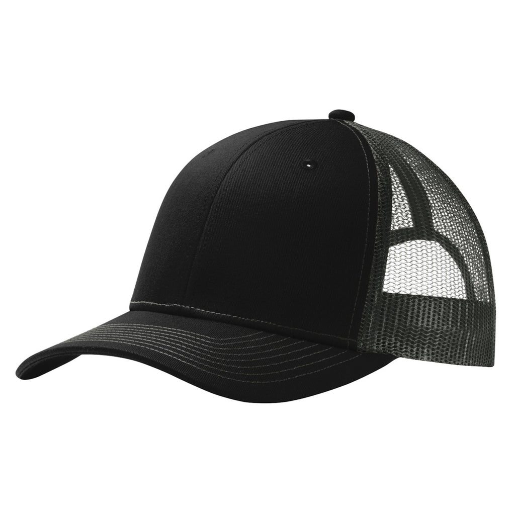 A classic style with a new and modern twist. The logoed Port Authority Black/Grey Steel Snapback Trucker Cap is the perfect solution for your next corporate apparel purchase. The two-toned cap features breathable mesh that circulates air to keep your head comfortably cool under the most intense competitive pressure. Contrast stitching on the bill creates a stunning appearance that will draw rave reviews from everyone your meet at civic events. Turn the rave reviews into sales by attaching your custom logo on the large imprint area. The mid profile and structured design give you a refined look that lets your peers know you have everything under control.Highlights