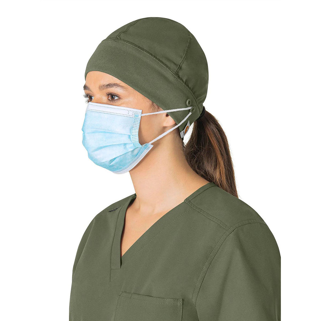 Create a custom design for the Carhartt Unisex Olive Modern Fit Scrub Cap Beanie with a back opening for long hair. This beanie wicks sweat and dries quickly, so you are comfortable throughout every procedure, and the side button placement offers two options for mask connection. Great at large medical centers to showcase your brand.