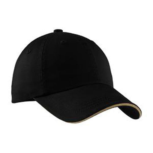 What makes a hat great? Well, it depends on the use. Create some great branded apparel out of this Port Authority Black/Khaki Sandwich Bill Cap with Striped Closure with our custom embroidery process and use this headwear for gifts, employee uniforms, giveaways, and much, much more. If only every piece of active wear could be this versatile.