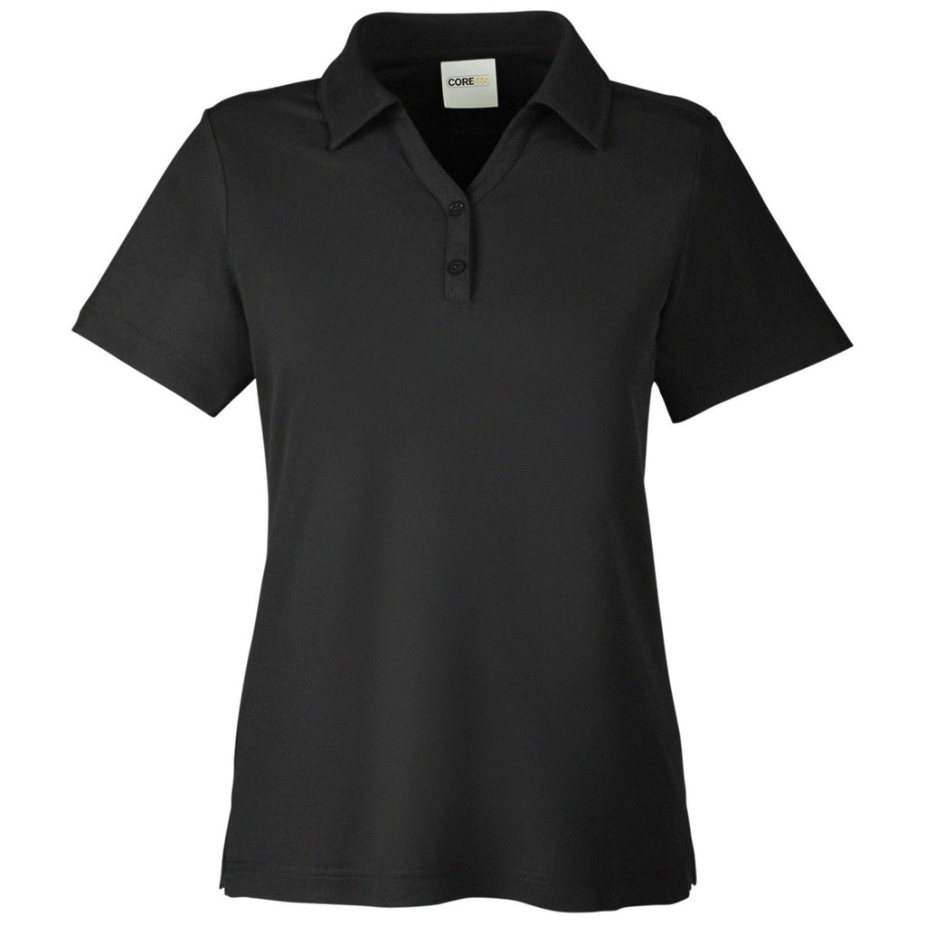 Look and perform your best in a custom Core 365 Women's Black Fusion ChromaSoft Pique Polo with moisture wicking and antimicrobial performance. Perfect as employee apparel with a company logo embroidered on with style, this polo will hold up to a hard day at the office or at play. Pair with a blazar for a corporate apparel look or wear alone for an upscale feminine look that has a two button Y-neck collar with dyed to match buttons. Side vents allow for freedom of movement and a tear away label means you will stay comfortable.Corresponding Men's Style:Core 365 Men's Black Fusion ChromaSoft Pique Polo