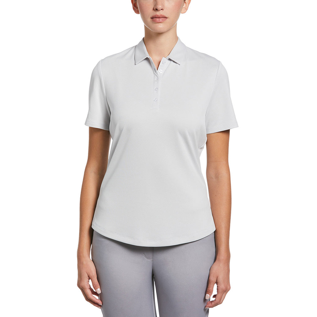 Hone the golfing skills of your company's employees or customers in this custom logo golf polo shirt. Custom logoed golf shirts are great exposure for your company. A winning style is the Callaway Women's Bright White Silver Birdseye Polo, it's a polished essential that boasts a crisp collar and button placket for a sporty look. Performance-ready polo shirt designed for women who love hitting the green looking their best. Both the pro players and amateurs will love the full range of motion in this polo shirt.