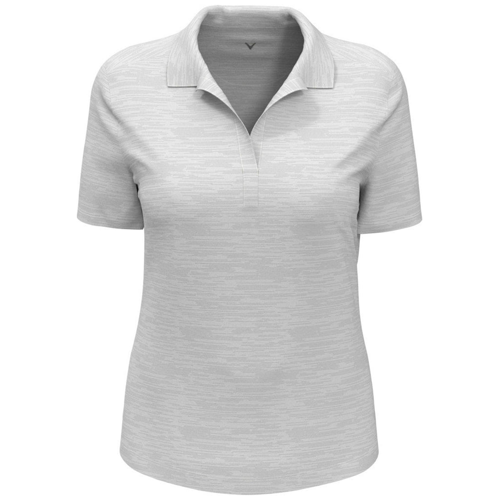 Look and feel great in a custom Callaway Women's White Broken Stripe Polo made of polyester jersey knit. The soft fabric with V-neck self fabric collar is perfect for golf events or every day wear. Add a company logo to use as part of employee uniforms that will have your workers looking and feeling professional. The rounded bottom hem provides coverage and the Opti-Dri technology wicks away moisture while UV Repel protects from the sun. Pair with a blazer for a more professional look or wear alone when having fun with friends. Customize with the custom logo of your choosing to use for events.
