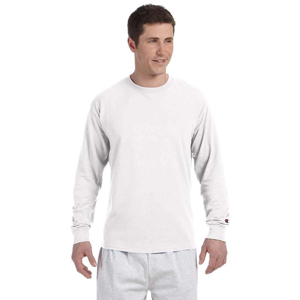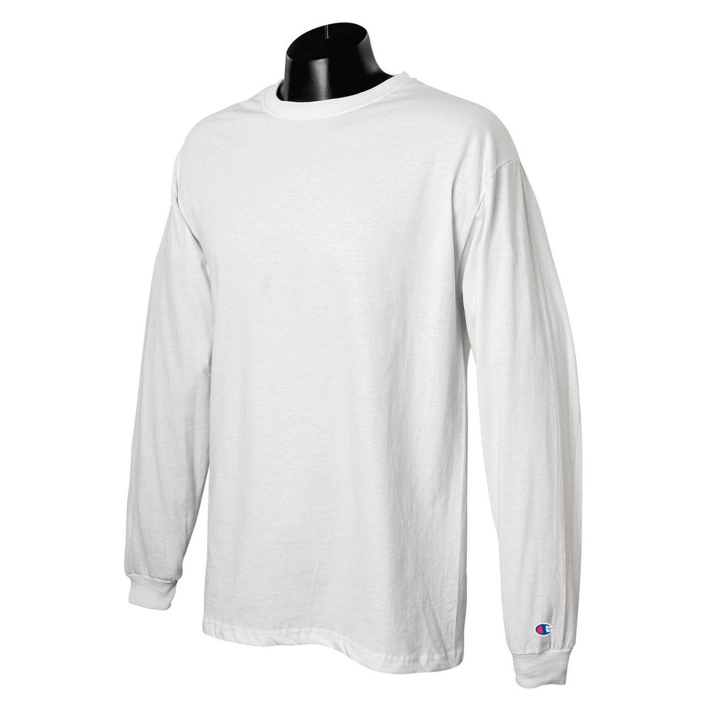 Champion Men's 5.2 oz White L/S Tagless T-Shirt