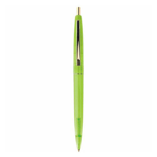 The greatest plus point that BIC Green Clear Clics Gold custom-imprinted eco-friendly pen presents to your company as a marketing tool is that the organization is concerned about environmental pollution, which helps to enhance its image and standing towards a greener world. Its gold-plated trim adds some extra luxe to your promotional campaign.