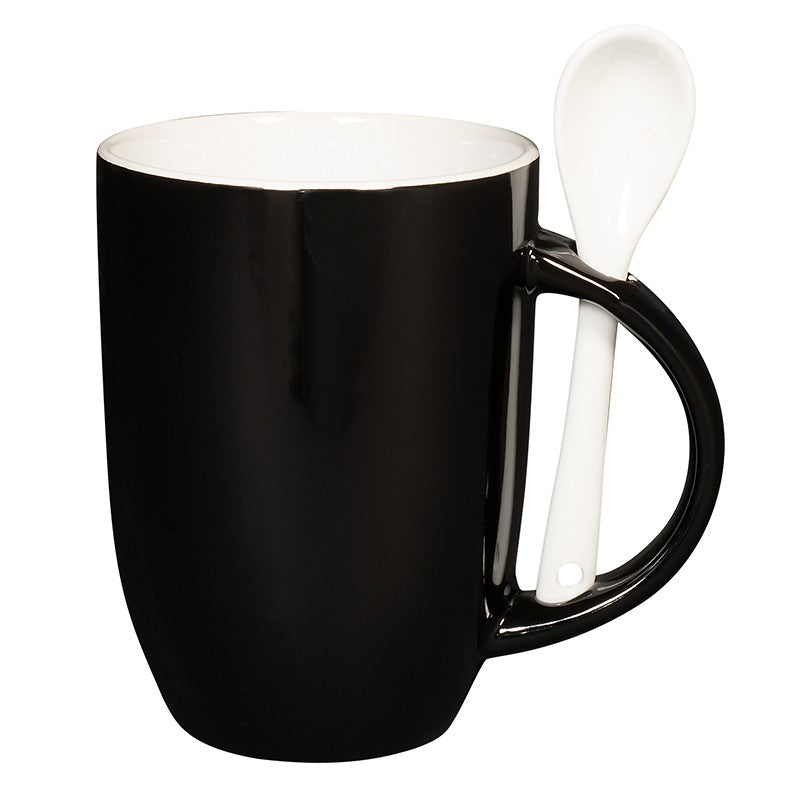 Let this custom Primeline Black 12 oz. Dapper Ceramic Mug with Spoon be your partner every coffee break. The unique mug sports wonderful colors and a matching spoon that comes handy for stirring your favorite hot beverage. Use the mug's charm to promote your brand - add a custom logo and this mug will be ready to go as an event giveaway for your trade shows!