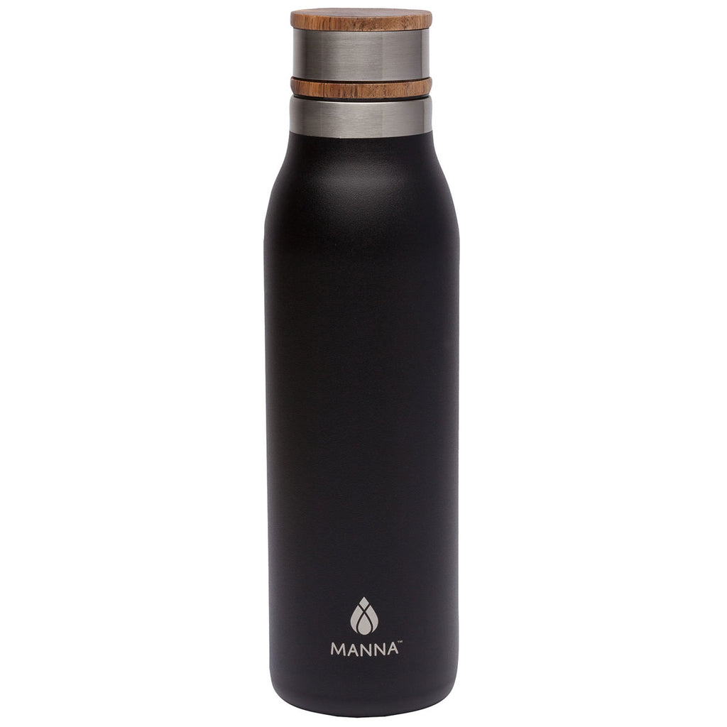 Manna Black Ascend 18 oz. Stainless Steel Water Bottle with Acacia Lid