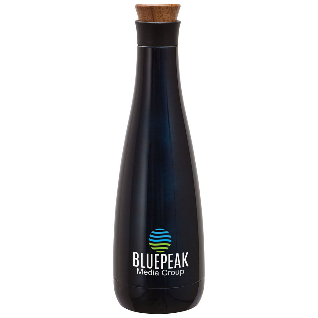 Sleek and sophisticated, the Manna 25 oz. Carafe Steel Bottle is an upscale item that will show off your company’s custom logo wherever it goes. It’s made from double walled stainless steel so it’s able to keep the liquid inside at an ideal temperature all day long. The acacia wood lid provides the perfect finishing touch.The minimum order for this product is 25 pieces.