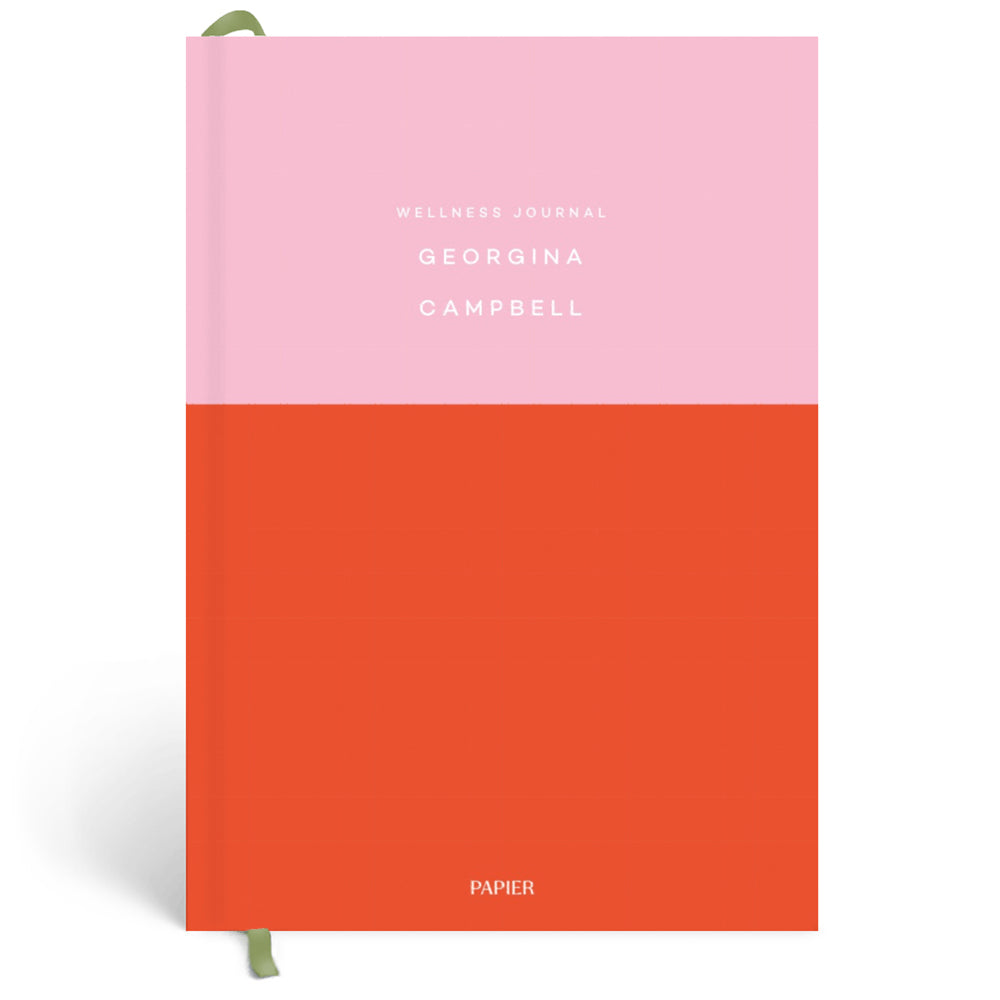Papier Pink/Red Colorblock Wellness Journal with a custom logo allows you to create a wellness focused place to keep track of your well-being. Perfect for mindful moments, this journal helps you reflect daily with new intentions, tracking sleep and energy levels and creating new habits. Create a colorful way to better your life.The minimum order for this product is 12 pieces.