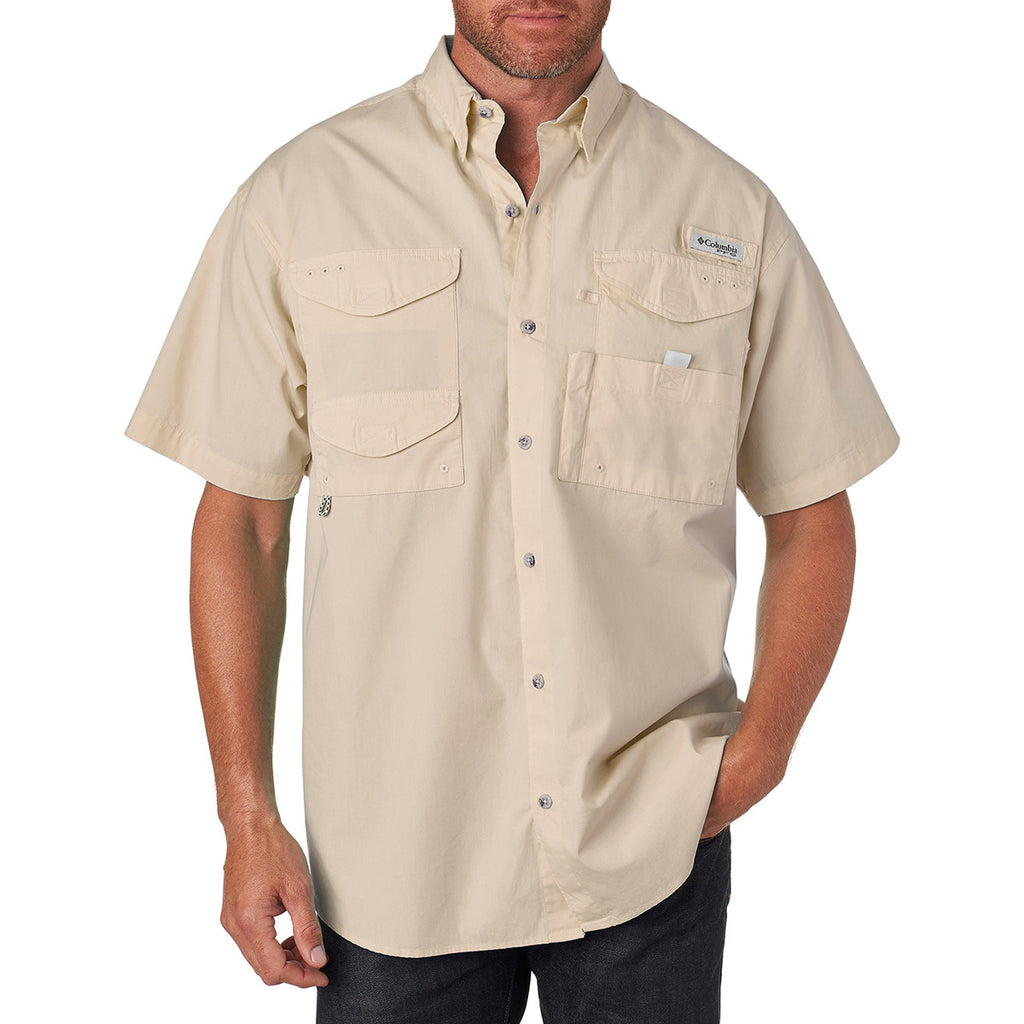Like fishing gear itself, a good fishing shirt needs to be functional. But it also has to be comfortable. The Columbia Men's Fossil Beige Bonehead S/S Shirt is comfortable enough to work for fishermen and casual customers alike. This short sleeve, button-up shirt is made up of 100% cotton Ultralite poplin that is lightweight and breathable. It is sand washed and has a cape-covered mesh back. There are two large box pockets, accessories compartments, a rod holder, utility loop and PFG venting. With so many colors to choose from, you can mix and match to compliment everyone on your team, in your office, or at your event.