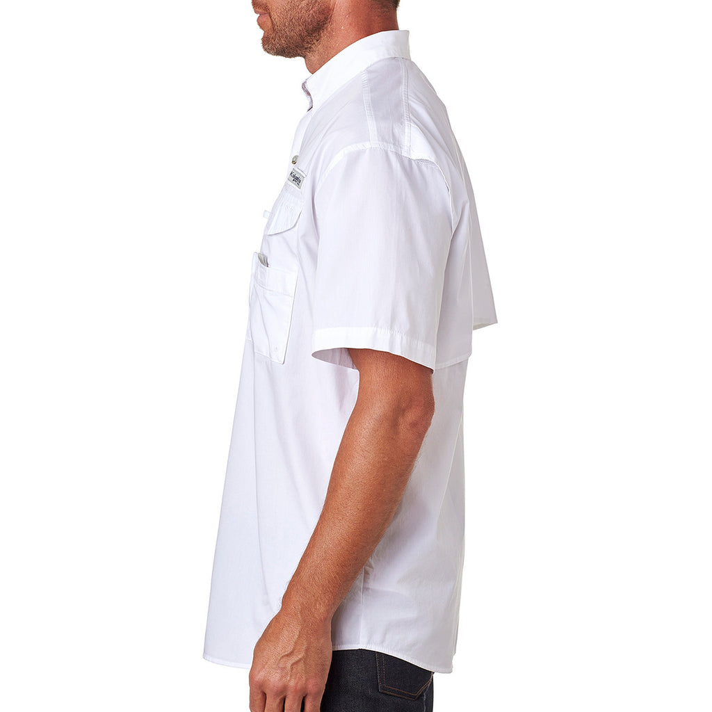 Like fishing gear itself, a good fishing shirt needs to be functional. But it also has to be comfortable. The Columbia Men's White Bonehead S/S Shirt is comfortable enough to work for fishermen and casual customers alike. This short sleeve, button-up shirt is made up of 100% cotton Ultralite poplin that is lightweight and breathable. It is sand washed and has a cape-covered mesh back. There are two large box pockets, accessories compartments, a rod holder, utility loop and PFG venting. With so many colors to choose from, you can mix and match to compliment everyone on your team, in your office, or at your event.
