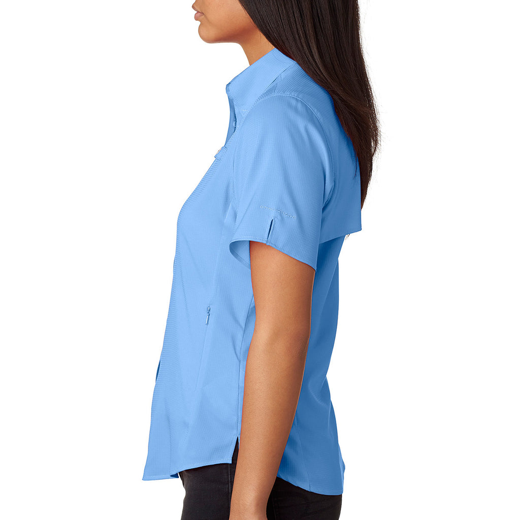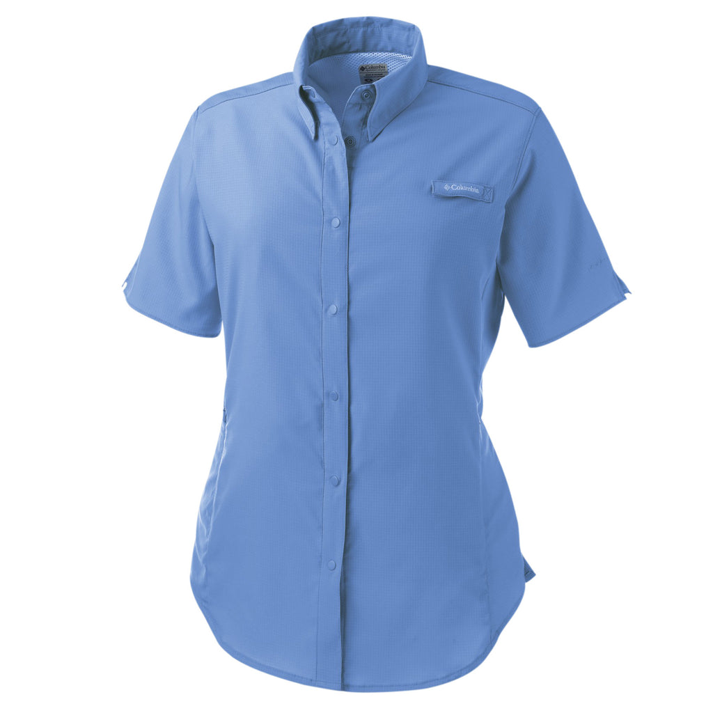 There's nothing quite so flattering as a well-cut shirt. That's why women love the Columbia Women's White Cap Blue Tamiami II Short Sleeve Shirt, a stylish and beautifully-crafted piece that delivers on all the details. The Columbia Women's White Cap Blue Tamiami II Short Sleeve Shirt features Omni-Dry technology, Omni-Shade UPF 40 technology, anti-microbial technology and moisture-wicking technology. Absolutely spectacular! Additional details include concealed pockets, PFG venting and a Columbia logo on the left chest.