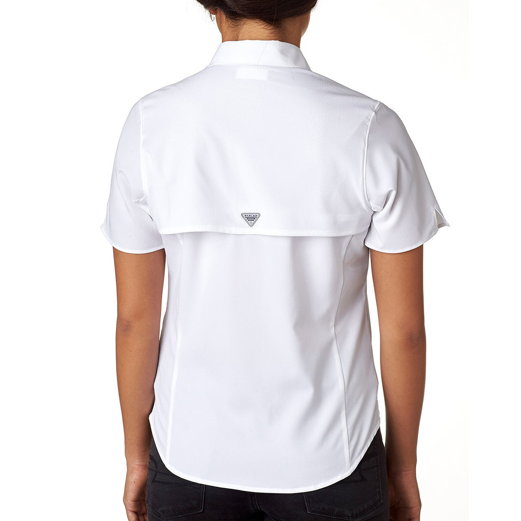There's nothing quite so flattering as a well-cut shirt. That's why women love the Columbia Women's White Tamiami II Short Sleeve Shirt, a stylish and beautifully-crafted piece that delivers on all the details. The Columbia Women's White Tamiami II Short Sleeve Shirt features Omni-Dry technology, Omni-Shade UPF 40 technology, anti-microbial technology and moisture-wicking technology. Absolutely spectacular! Additional details include concealed pockets, PFG venting and a Columbia logo on the left chest.