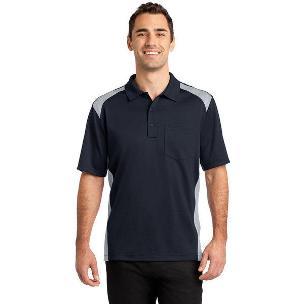 CornerStone Men's Dark Navy/Light Grey Select Snag-Proof Two Way Colorblock Pocket Polo