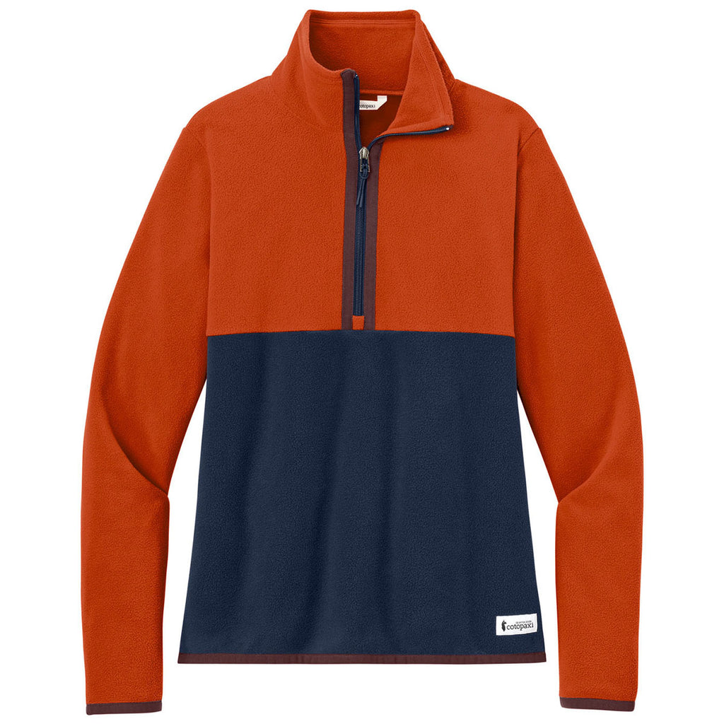 Enjoy the custom Cotopaxi Women's Canyon/Maritime Amado 1/2-Zip Fleece, which combines a flattering, feminine cut with cozy warmth for all-day comfort. Its lightweight, durable fabric makes it ideal for hiking, travel, or office layering. Perfect for custom branding, this fleece offers functional style and easy care, making it a versatile addition to any wardrobe.This product can only ship within the United States and Canada.