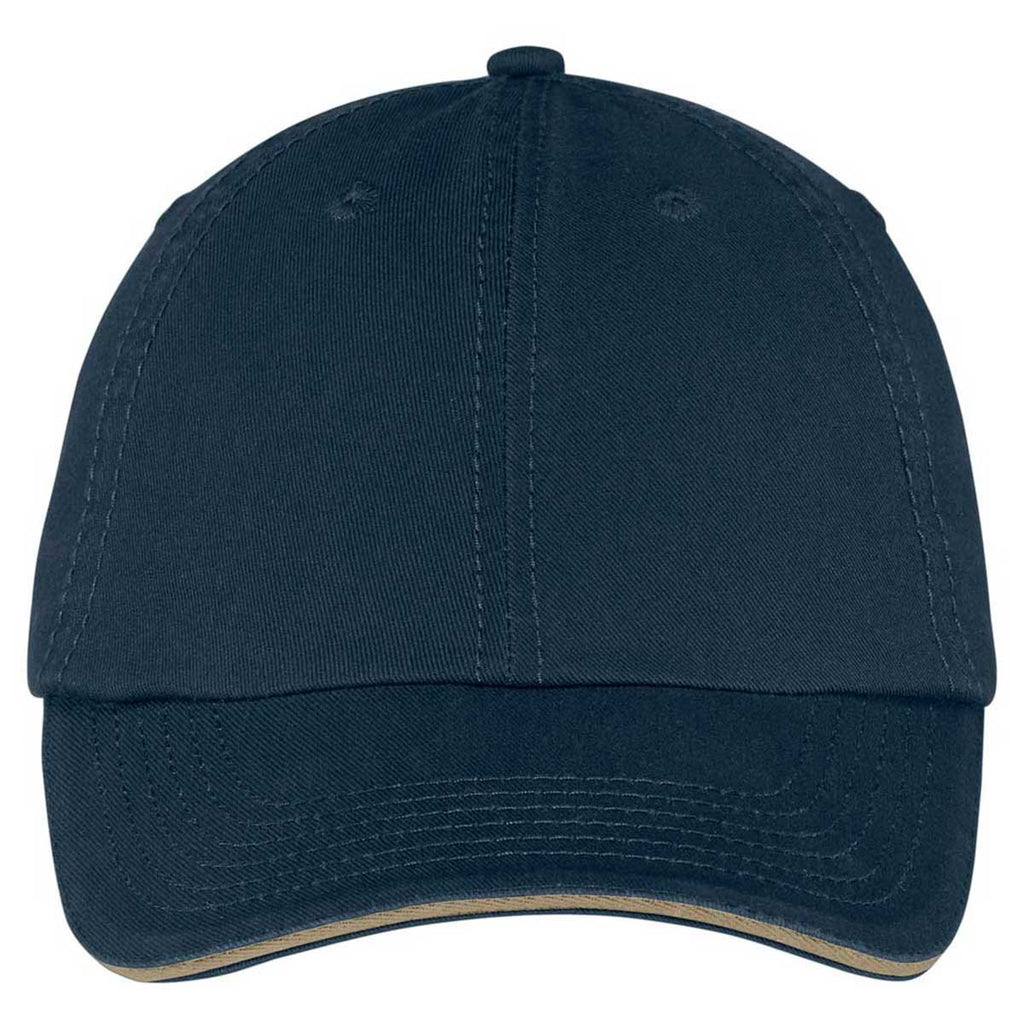 Port & Company Navy/Khaki Washed Twill Sandwich Bill Cap