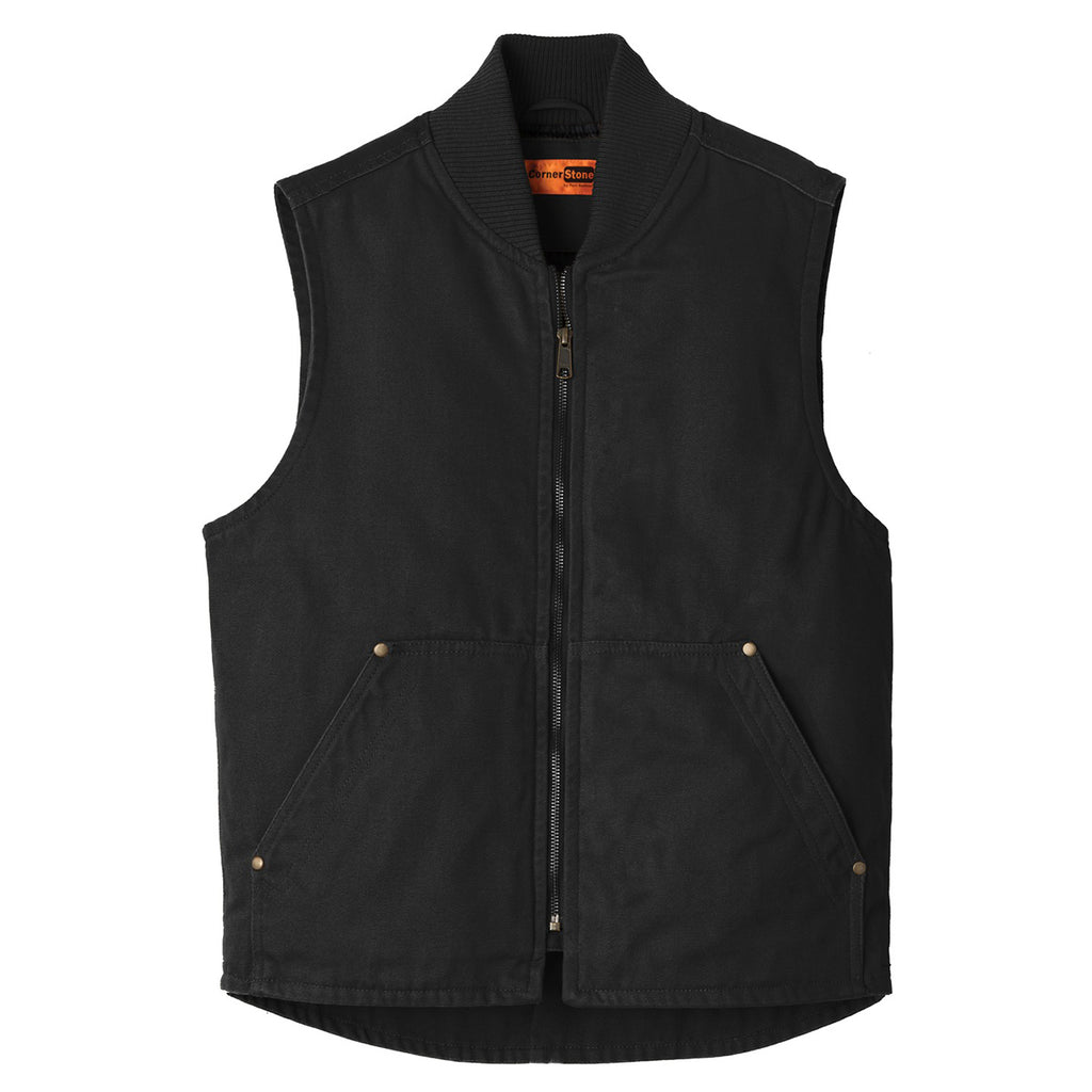 Designed to tackle the toughest outdoor projects, the logoed CornerStone Men's Black Washed Duck Cloth Vest incudes enzyme-washed fabric that presents a clean look while still being functional. One-hundred percent cotton duck cloth feels smooth against the body to ensure long lasting comfort. Poly-fill insulation within the polyester taffeta lining boosts the interior warmth to make the vest perfect for camping and hunting trips. Use the interior pocket with a hook and loop closure to store your most needed accessories. Attach your company logo on the large imprint area to spread the word about your business at the next outdoor corporate event.