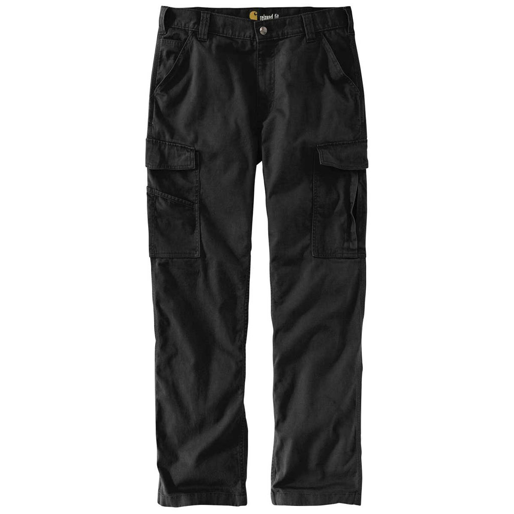 Create your custom look with the Carhartt Men's Black Rugged Flex Rigby Cargo Pant. Made of a cotton rich, spandex canvas these heavy duty workwear pants are a must have for those who work or play outdoors. Great for hiking, camping, or general outdoor work, these pants sit at the waist with comfortable room through the seat and thigh. Stronger sewn on seam belt loops are great for construction workers and farmers as an employee gift or just to add to their wardrobe. The straight leg opening easily fits over most boots and Rugged Flex durable stretch allows for ease of movement.This product cannot ship outside of the United States.