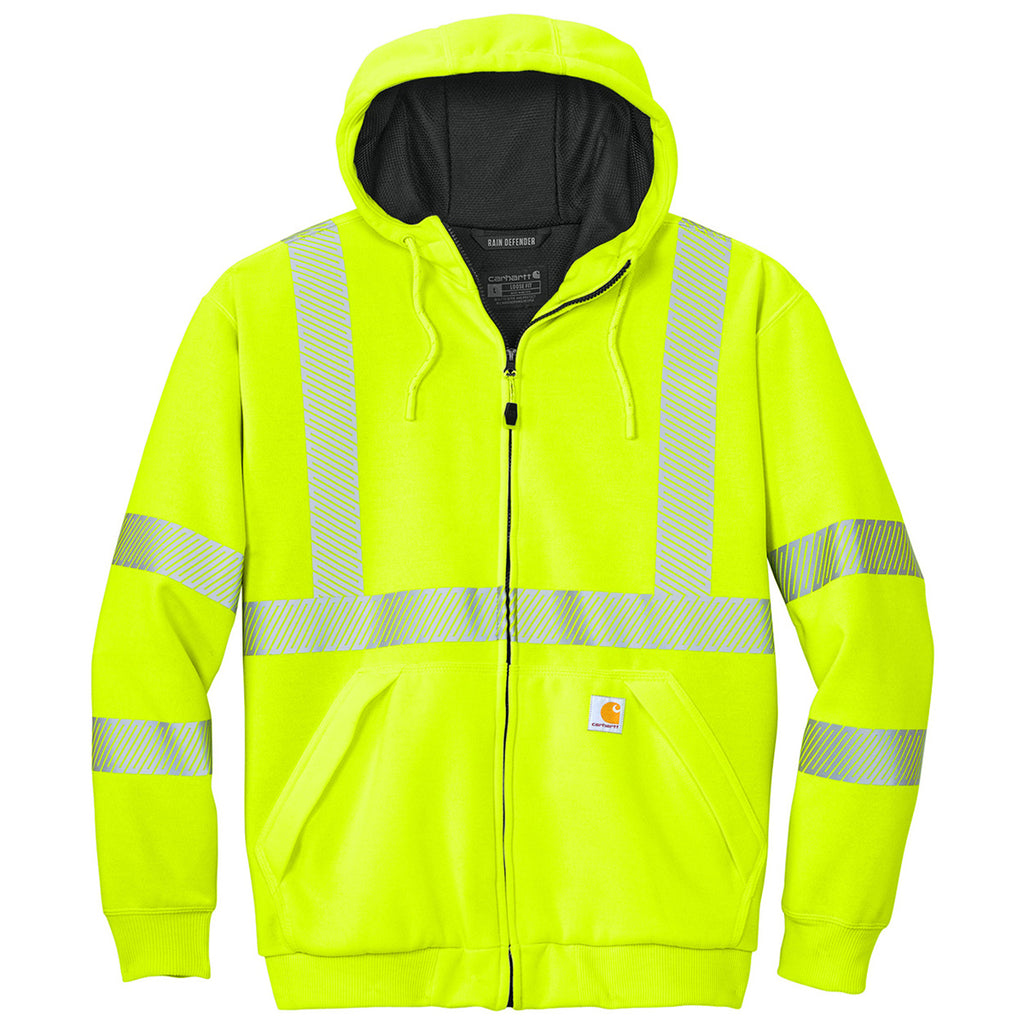 Add a corporate logo to the Carhartt Unisex Brite Lime ANSI 107 Class 3 Lined Full-Zip Sweatshirt to help ensure the safety of your work crew. This Class 3 sweatshirt is easy to put over whatever you are wearing. Best of all, this full-zip sweatshirt is water-repellant with an adjustable three-piece hood. Place an order right away for your emergency or work crew.This product can only ship within the United States and Canada.