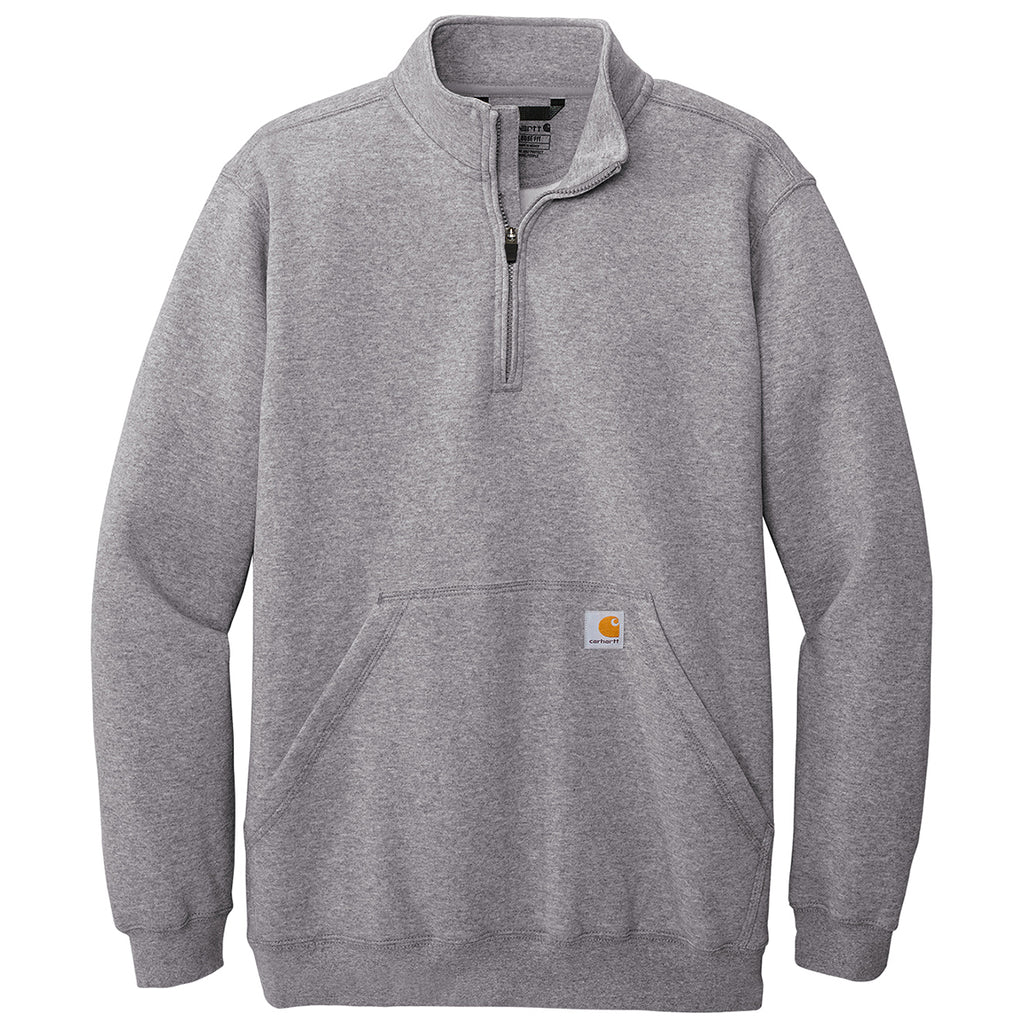 The custom Carhartt Men's Heather Grey Midweight 1/4-Zip Mock Neck Sweatshirt offers warmth and comfort in one must-have top. When you add your company logo to the sweatshirt, you now have an excellent new employee welcome gift or recruiting event giveaway item.