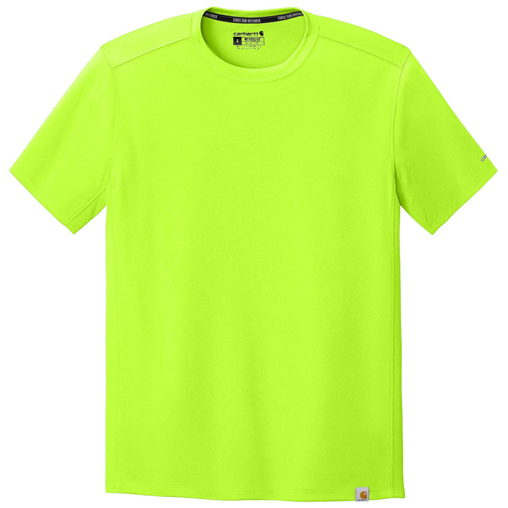 With a corporate design, Carhartt Men's Brite Lime Force Sun Defender Short Sleeve T-Shirt delivers superior comfort and protection with moisture-wicking fabric and built-in UV defense. Its lightweight design ensures breathability while providing all-day protection from the sun. Whether working outdoors or enjoying leisure time, this shirt combines performance with durability for any active lifestyle.This product can only ship within the United States and Canada.