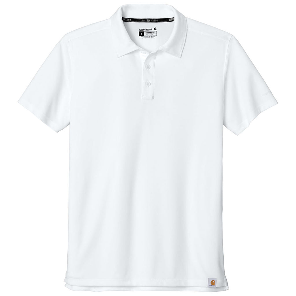 Carhartt Men's White Force Sun Defender Polo with a corporate logo combines rugged durability with sun protection technology. Crafted from lightweight, moisture-wicking fabric, it keeps you cool and comfortable during long hours outdoors. This polo is ideal for workers in the field or anyone needing reliable UV protection without sacrificing style and mobility.This product can only ship within the United States and Canada.