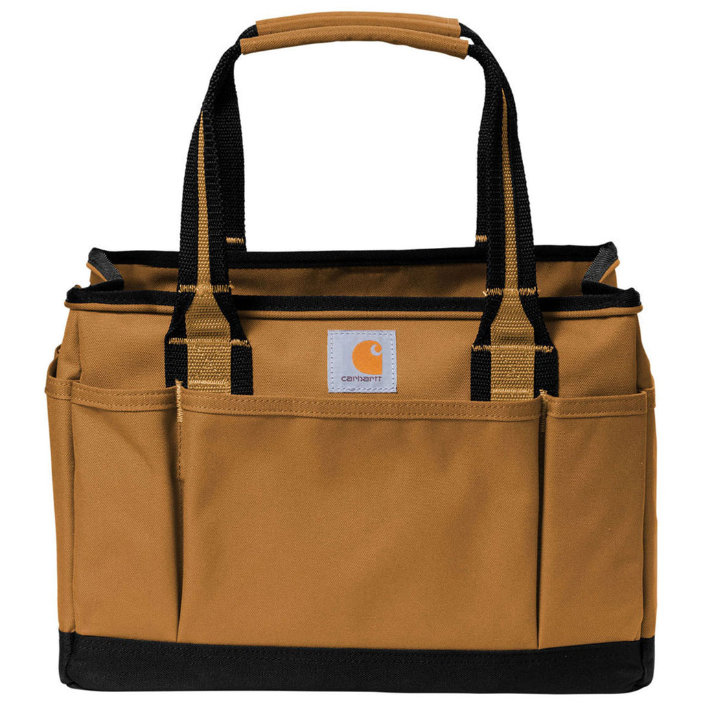Add a custom logo to the rugged Carhartt Carhartt Brown Utility Tote for a custom gift that will see lots of use. Ideal for those who work in construction or those who are difficult to buy for, this 600D polyester tote has Rain Defender durable water repellant and a sturdy base to help it remain upright. A large main opening is perfect for tools and other supplies and dual webbing handles makes this easy to grab and go. Choose a company logo to sale or giveaway these totes as promotional items that serve a wonderful and functional purpose. Carhartt quality means this will stand the test of time.