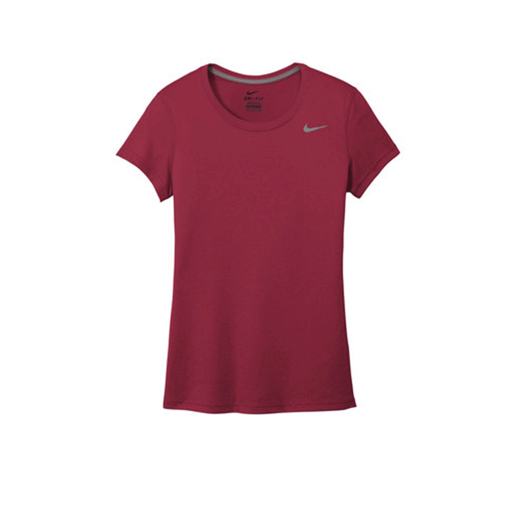 Design your custom logo to place on the Nike Women's Team Maroon Legend Tee with Dri-FIT technology to wick away sweat and keep you drier throughout the day. Perfect with a company logo to be used as employee apparel or simple athleisure wear, this tee is durable and tag free for comfort. Add a logo to give as an employee gift or to use at trade shows for a form of advertising that will turn heads. Made of polyester jersey, this tee is a Nike trademark that will get you recognized. Great as day to day athleisure apparel or most anything else, event company outings.