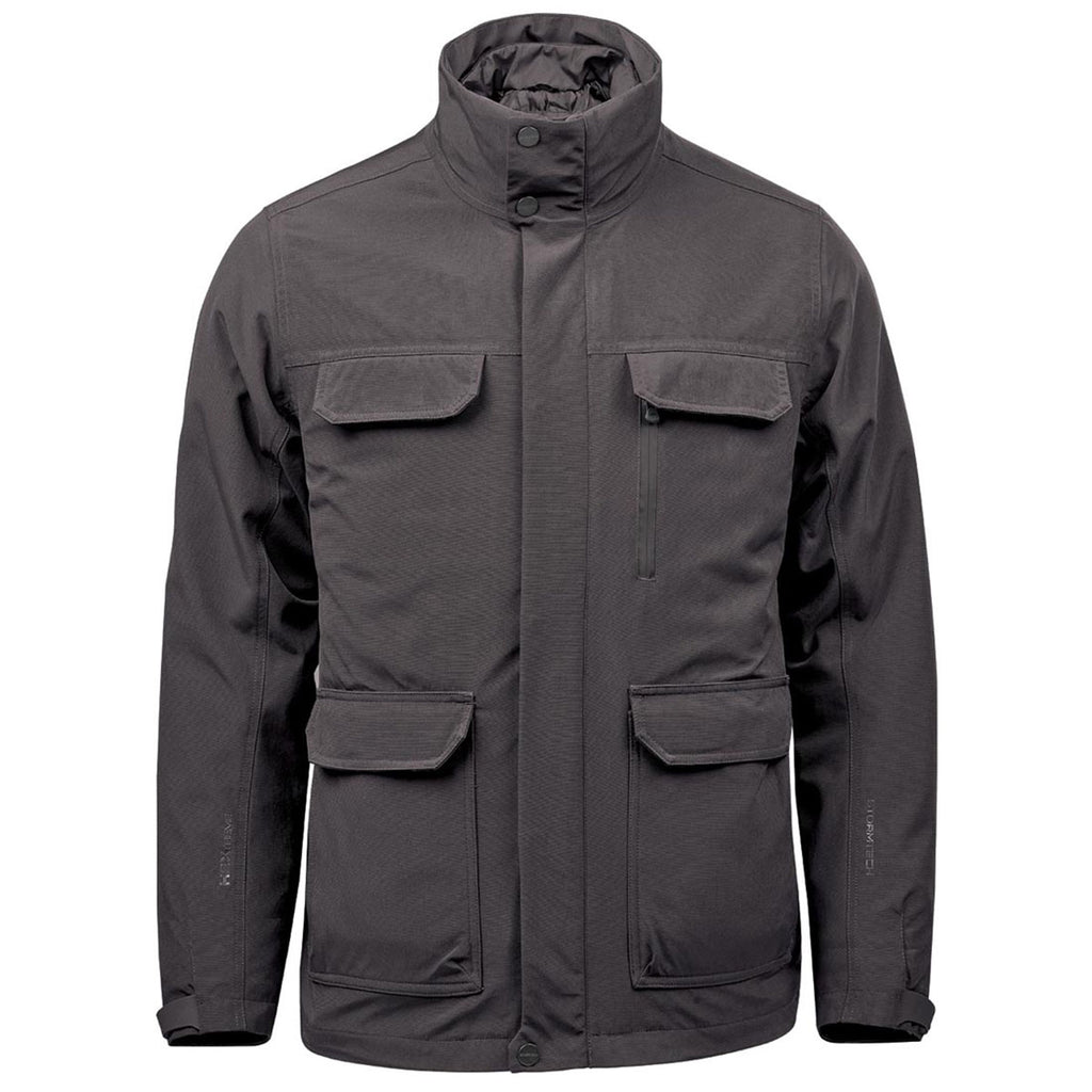 Stormtech Men's Granite/Black Athabasca System Shell with a custom logo is made for hard work. Great for those who work outdoors, this heavy-duty system shell has multple pockets tools and small items and is easy to configure based on changing weather conditions. Great as part of a uniform or to keep for yourself. Place an order today.Highlights