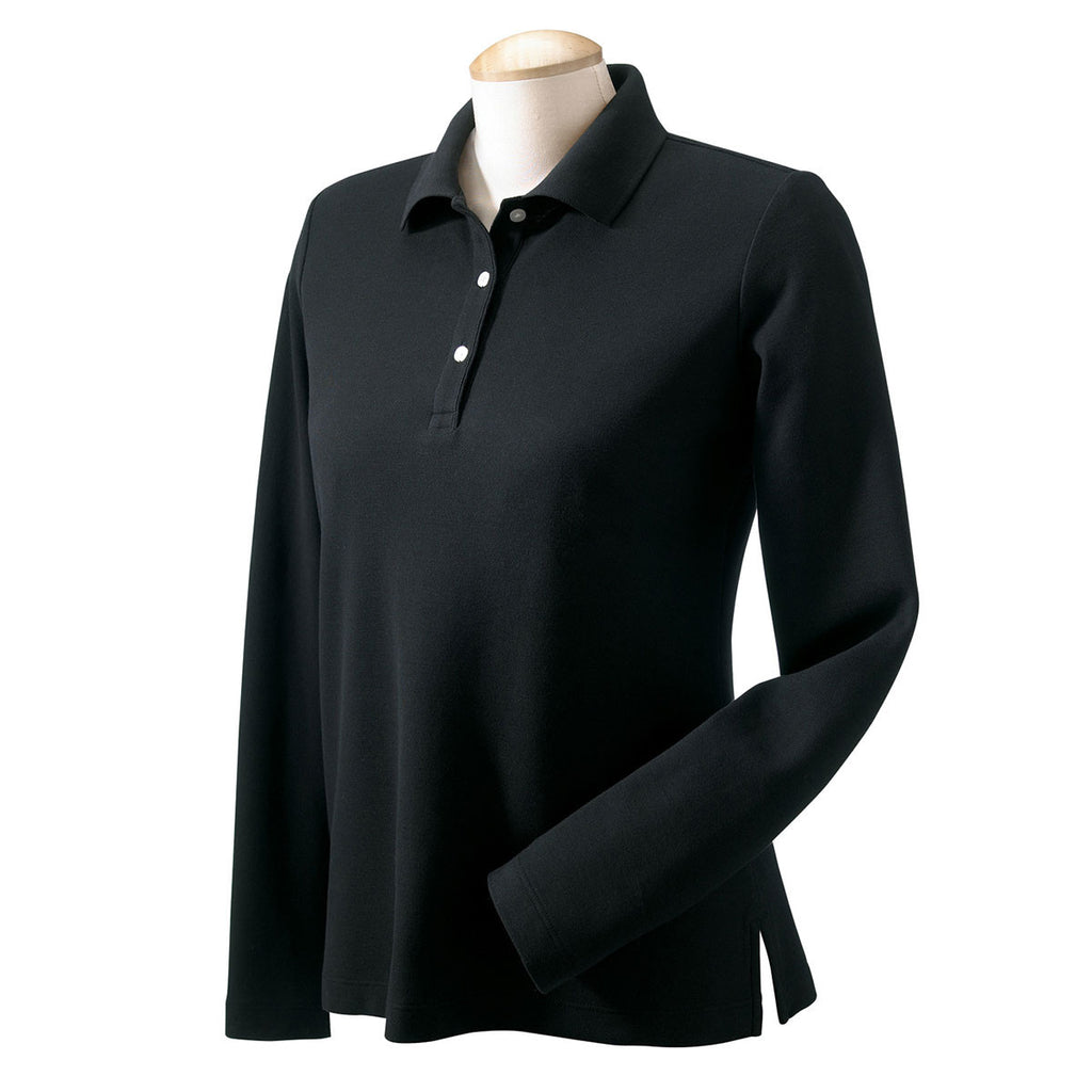 Devon & Jones Women's Black Pima Pique Long-Sleeve PoloCorresponding Men's Style: Devon & Jones Men's Black Pima Pique Long-Sleeve Polo