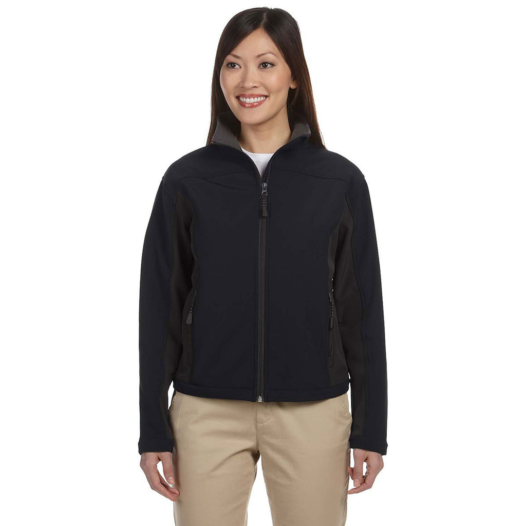 Devon & Jones Women's Black/Dark Charcoal Soft Shell Colorblock JacketCorresponding Men's Style: Devon & Jones Men's Black/Dark Charcoal Soft Shell Colorblock Jacket